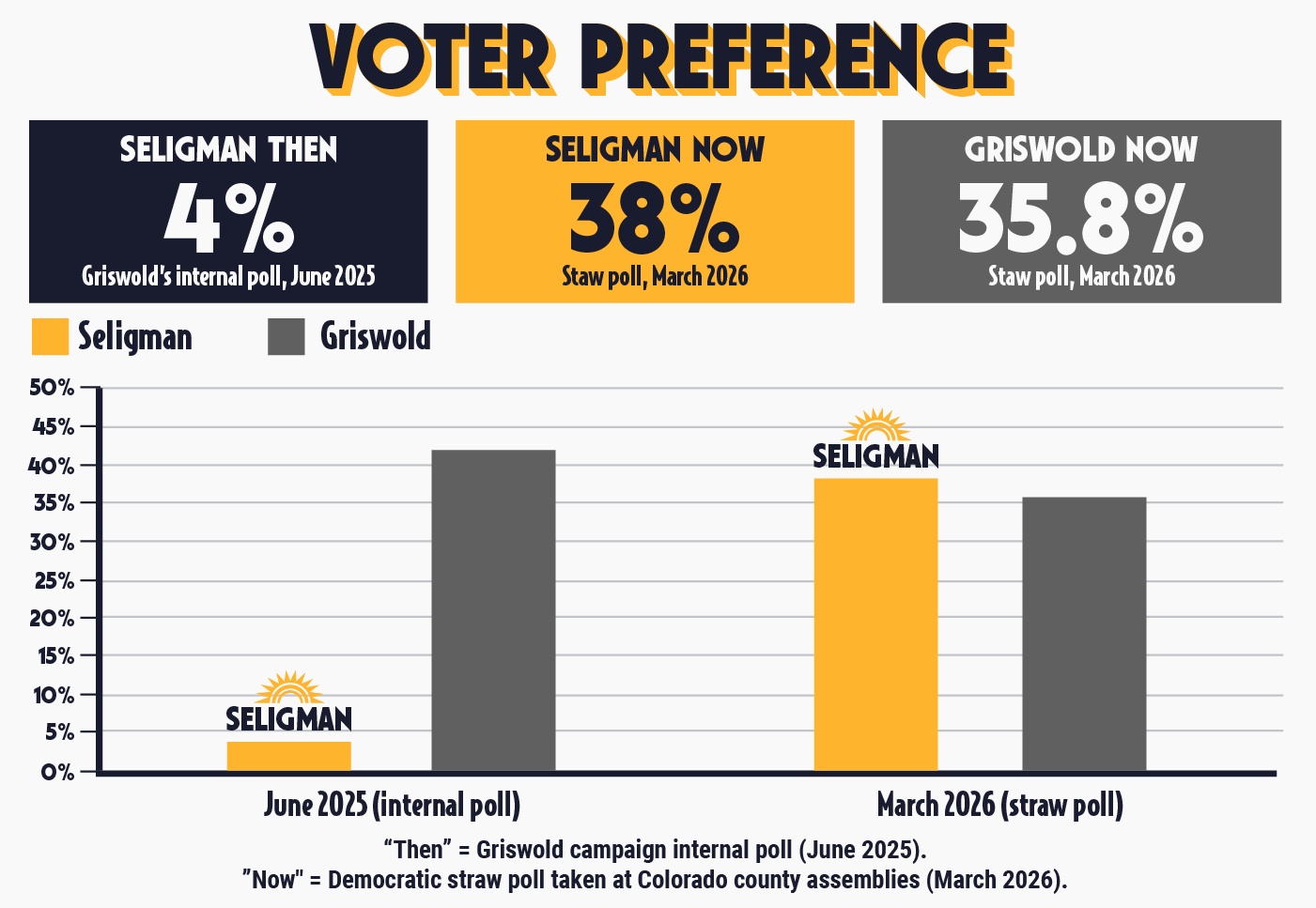 His most prominent opponent in this race is Jena Griswold, Colorado's current Secretary of State. She's better known, better funded, and has spent months telling anyone who will listen that she's the inevitable frontrunner, which is clearly not true.